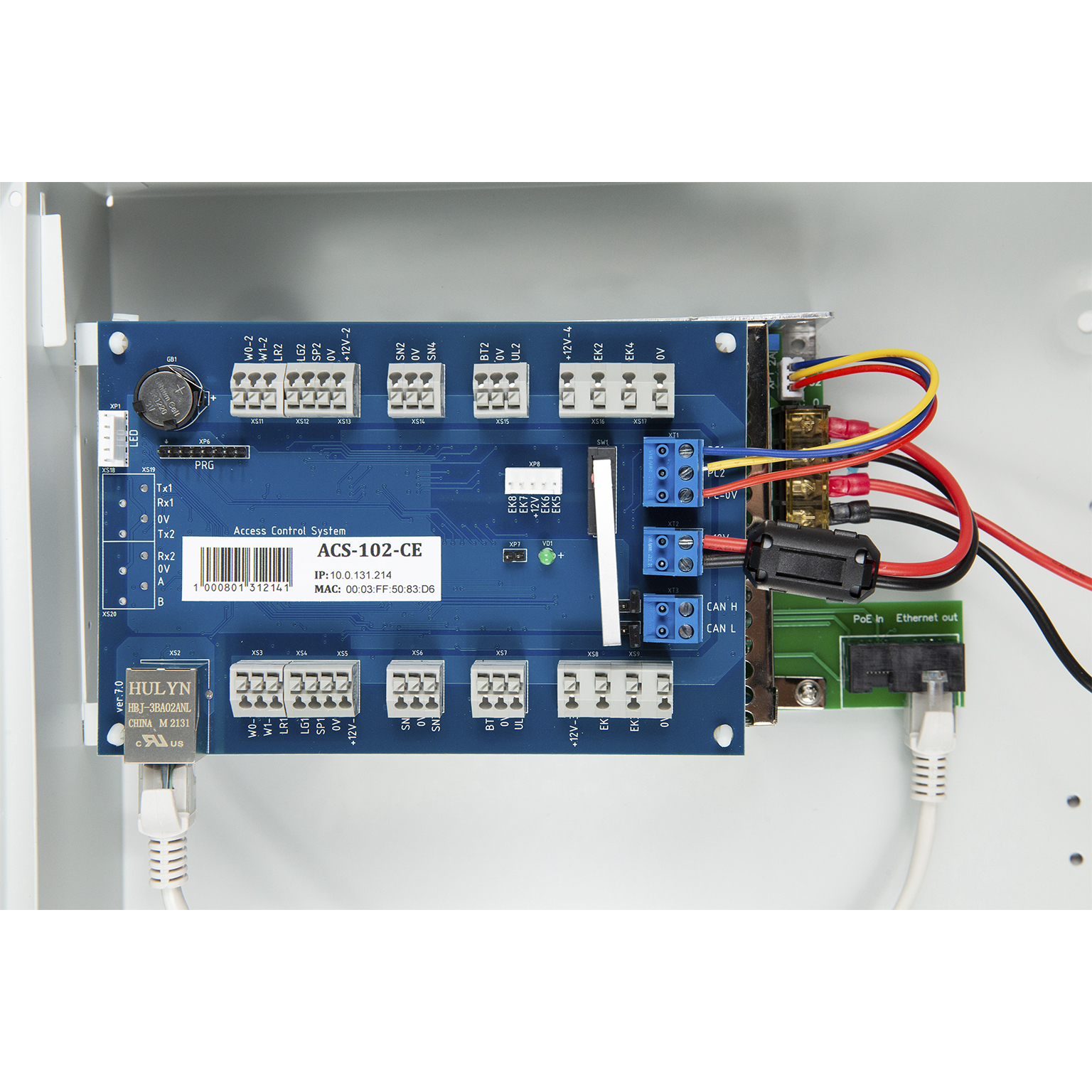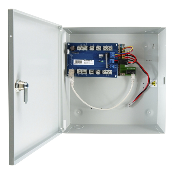 Контроллер имеет металлический корпус, поэтому он защищен от внешних воздействий лучше, чем модель в пластиковом корпусе (ACS-102-CE-В (POE)). Механический замок позволяет ограничить доступ к плате контроллера и другим элементам коммутации.